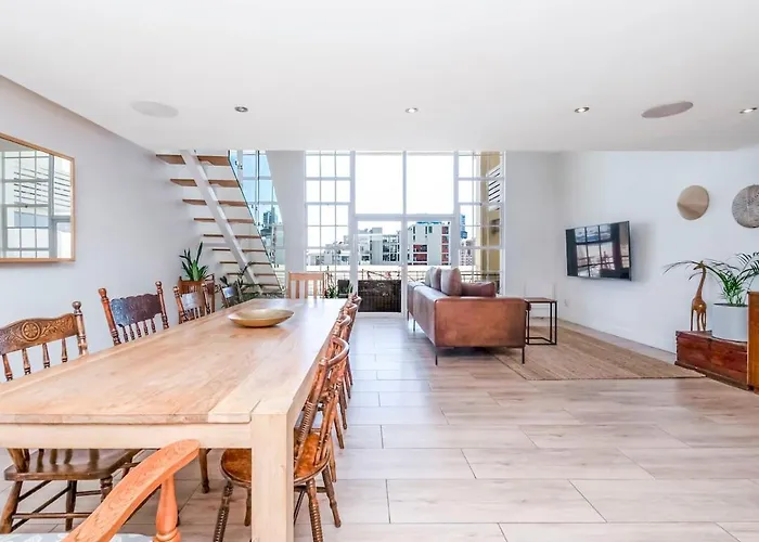 2 Bed Modern Classic-Stylish Double-Volume Living Cape Town apartment is located 600 metres from Cape Town train station and around a 5-minute walk from Cape Quarter 'The Square'.